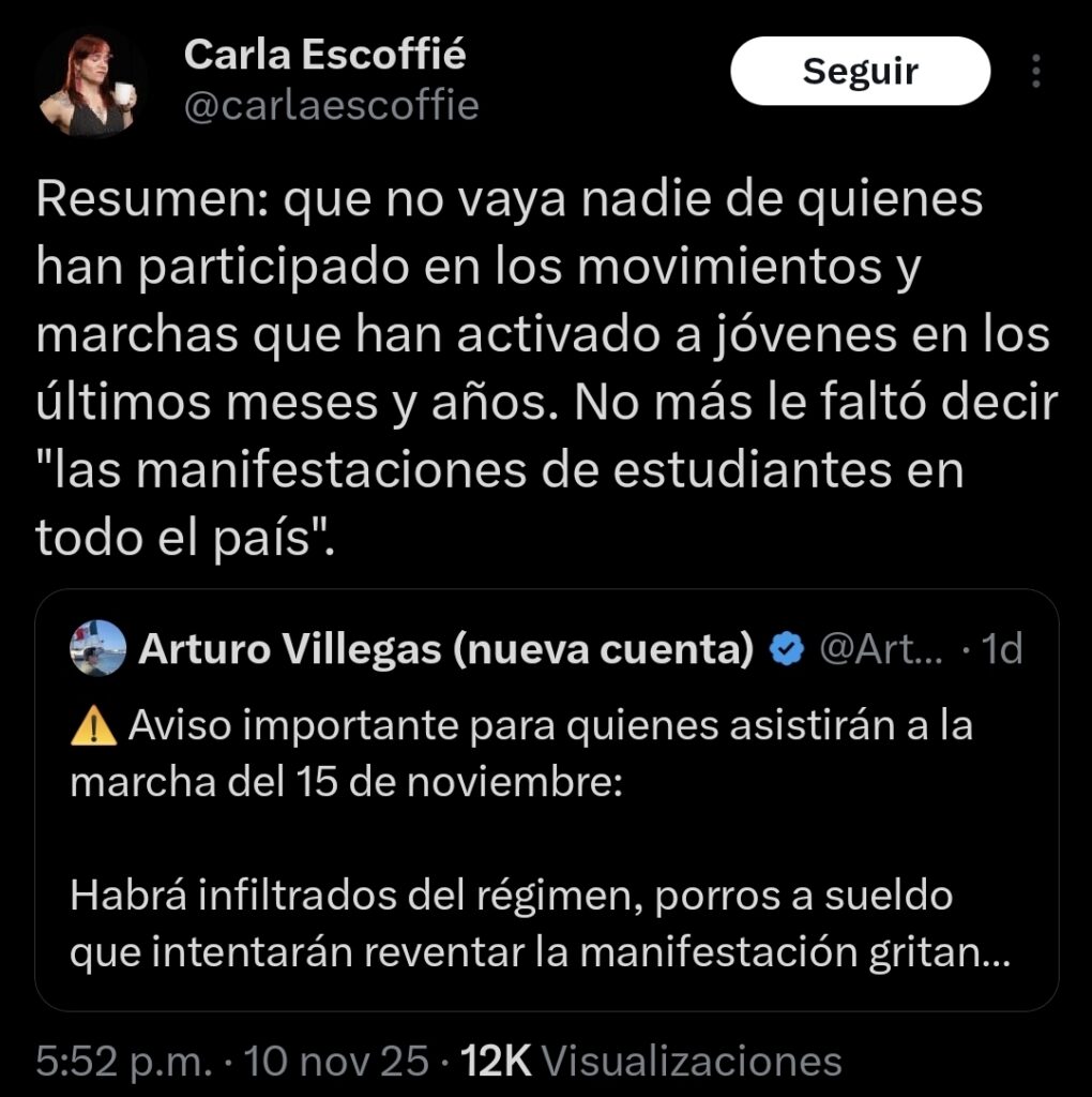 Buenas mis queridos padawans, hoy les vengo a contar que el próximo 15 de noviembre se realizará una marcha en la Ciudad de México tras el asesinato del alcalde Carlos Manzo en Uruapan, Michoacán, presentada en redes como una expresión de hartazgo ante la violencia y la impunidad. La convocatoria surgió inicialmente desde la cuenta “Generación Z México”, que afirma ser un movimiento de jóvenes apartidista y orientado a exigir justicia y mayor seguridad.